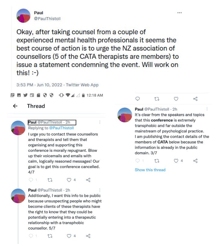 Therapists who raise concerns about ‘gender-affirming’ practices have been subjected to bullying and intimidation with one example being the media vilification of both organisers and speakers at the Child and Adolescent Therapists’ conference held in Nelson in 2022. The mere idea that psychotherapists might want to talk about this significant new phenomenon was enough to create a backlash that caused a keynote speaker to withdraw and, following threats to burn down the venue, the conference had to be moved to a secret location.
